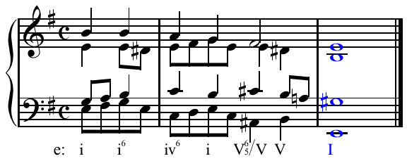 Note the final resolution in blue is the major. Bach is in good company, as many prevalent composers, including the likes of Mozart, Beethoven, and Handel have all leveraged this device for turning the phrase to the major in resolution for a minor piece.